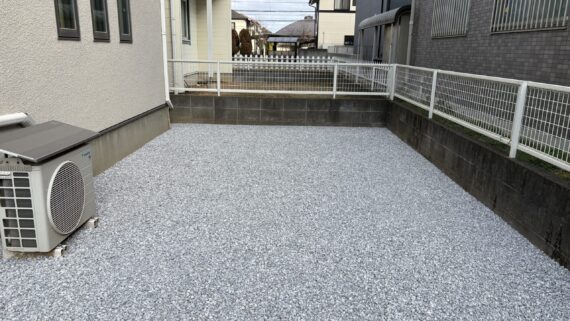 雑草対策として、防草シートと砂利敷きをご用命いただきました。