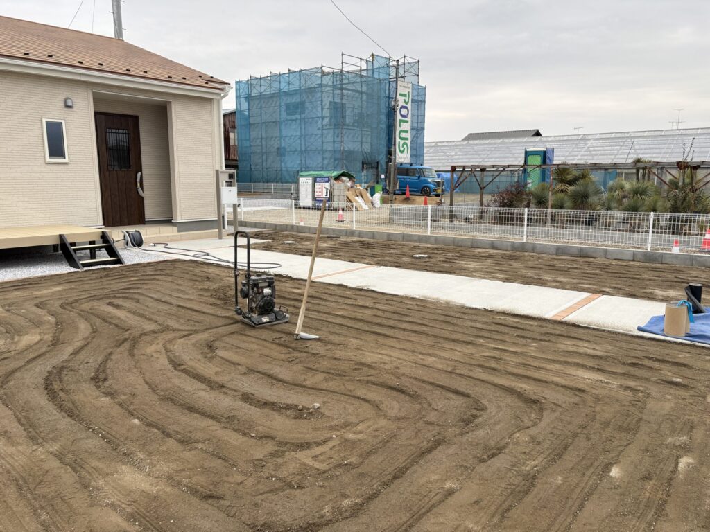 セメント質の細かい砂を充填して、整地します。